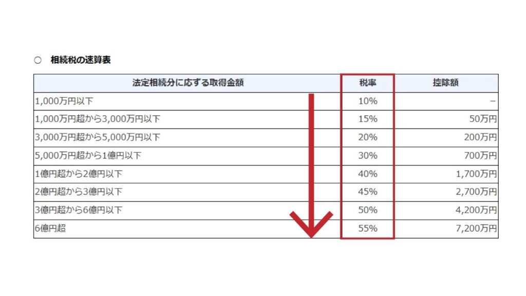 相続税は財産額が増えるほど税率も上がるため、