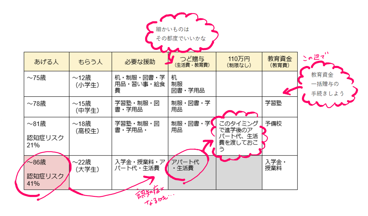 認知症になった後や死亡した後でも、教育費の贈与をすることができます。