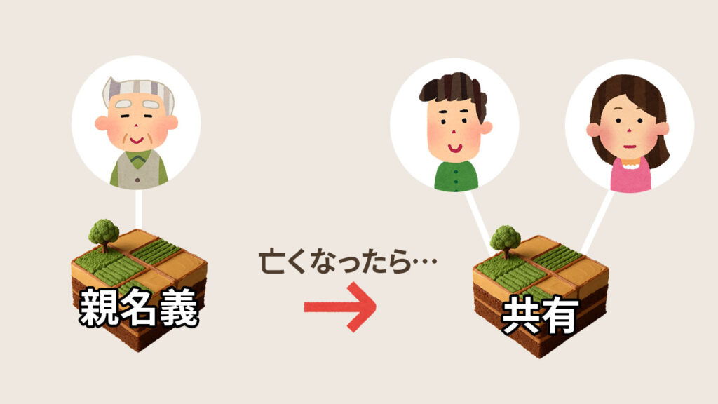 親が亡くなると、親名義の土地はいったん、相続人の共有となります。